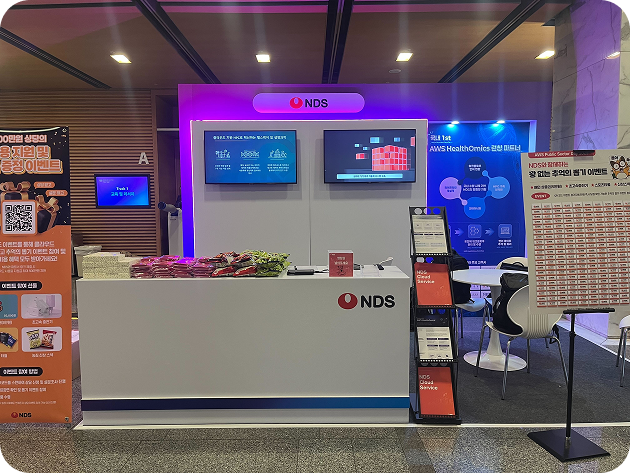 또한 행사장 내 부스에서는 뽑기 이벤트와 함께 HealthOmics 사례 및 오퍼링을 소개했습니다. 많은 분들이 참여해 뜨거운 관심을 보여주셨으며, 헬스케어 데이터 분석과 클라우드 기반 혁신에 대한 기대감을 확인할 수 있었습니다. 앞으로도 NDS는 고객과 파트너가 안심하고 활용할 수 있는 글로벌 수준의 연구 환경을 지원하겠습니다.